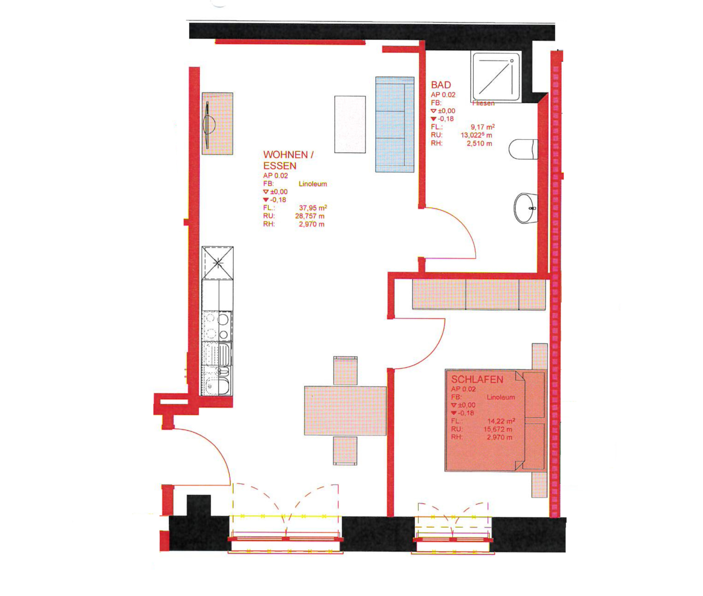 You can expect sunny 2-room apartments in different sizes, you can choose between the small version with approx. 45 sqm up to the spacious 76 sqm apartment with some more variations in between.