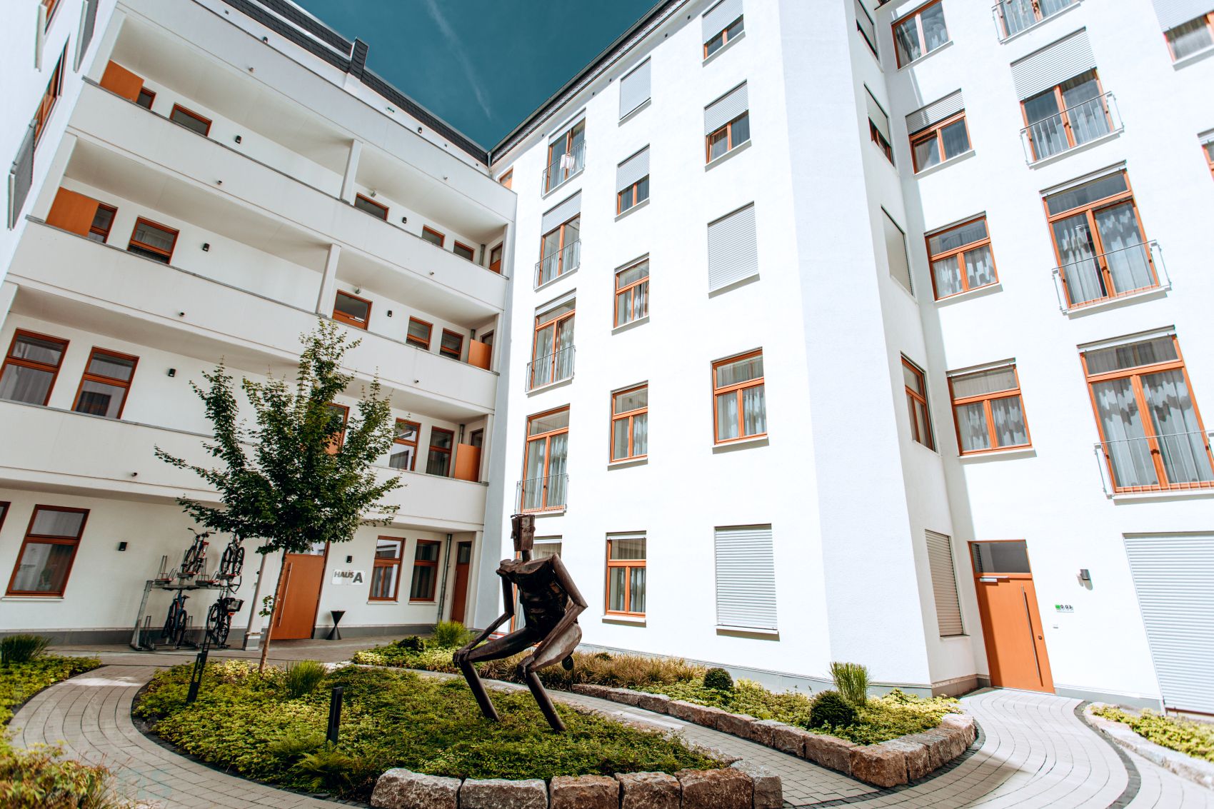 Of course, the elevator and the privacy of the tenants was also considered, here perfectly solved by the self-contained inner courtyard. The courtyard is only accessible for the tenants of the house by a locking system and the installed video intercom system in each apartment offers additional privacy protection.
