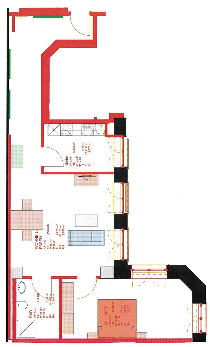 The chic 2-room apartments have generous floor plans. The high rooms convey a modern old building feeling.