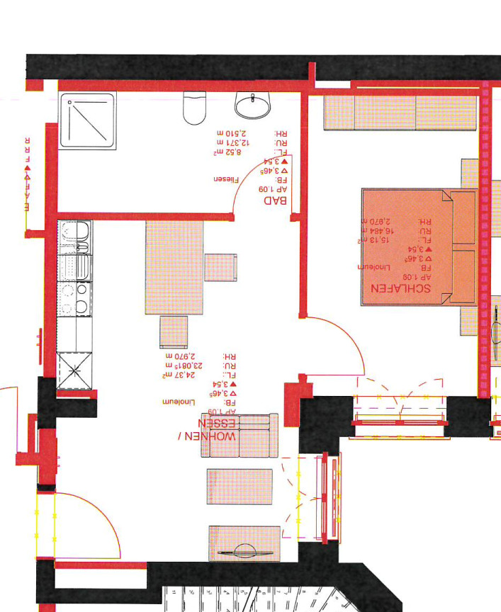 The chic 2-room apartments have generous floor plans. The high rooms convey a modern old building feeling.