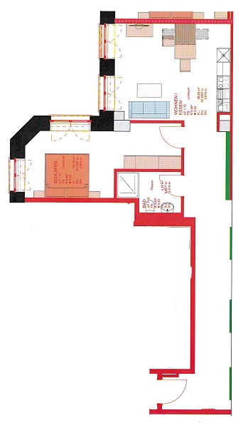 The chic 2-room apartments have generous floor plans. The high rooms convey a modern old building feeling.