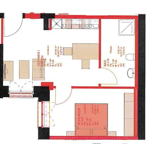 You can expect sunny 2-room apartments in different sizes, you can choose between the small version with approx. 45 sqm up to the spacious 76 sqm apartment with some more variations in between.