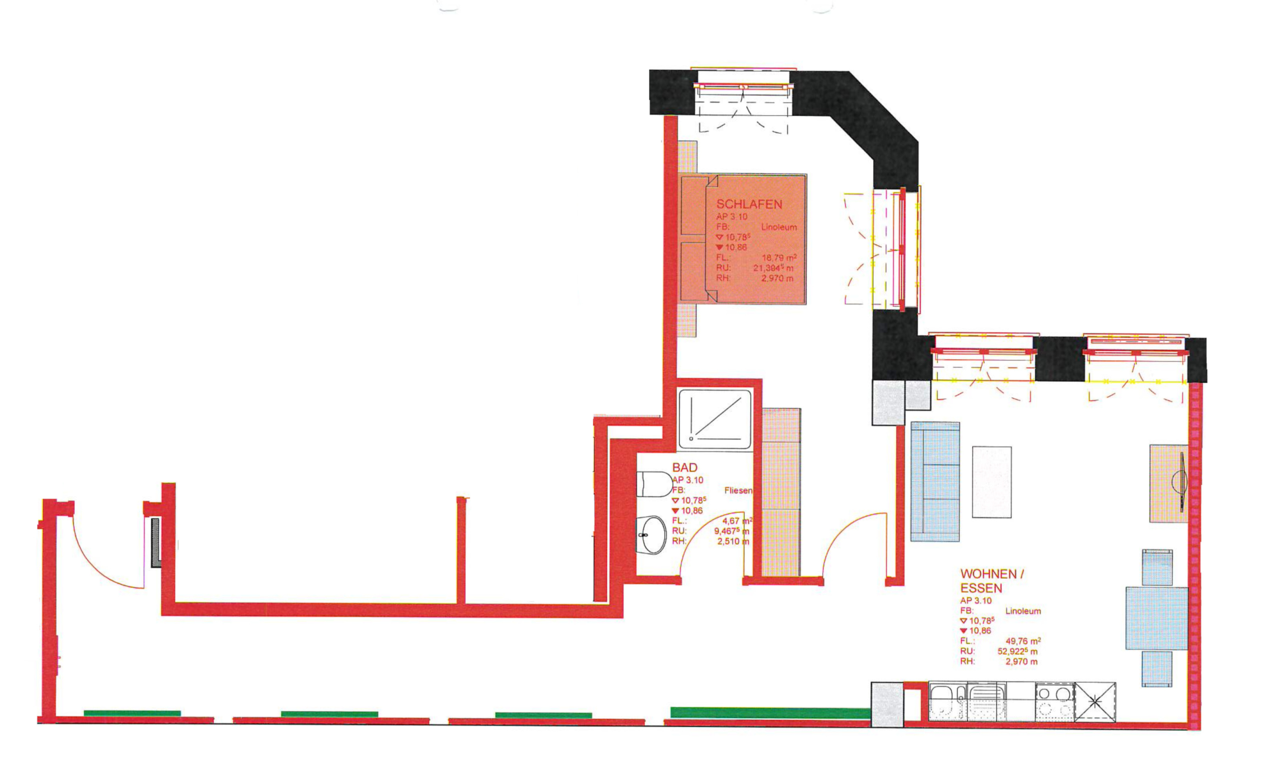 You can expect sunny 2-room apartments in different sizes, you can choose between the small version with approx. 45 sqm up to the spacious 76 sqm apartment with some more variations in between.