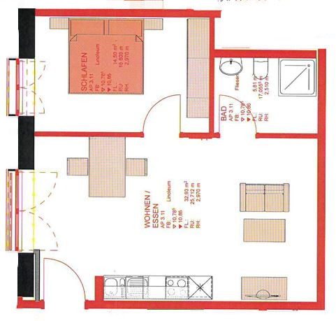 You can expect sunny 2-room apartments in different sizes, you can choose between the small version with approx. 45 sqm up to the spacious 76 sqm apartment with some more variations in between.