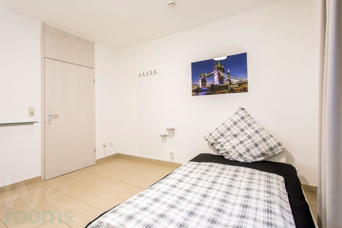 The rooms are equipped with a bed including bedding and bed linen, closet, desk with chair and a chest of drawers. The use of WLAN is included.
