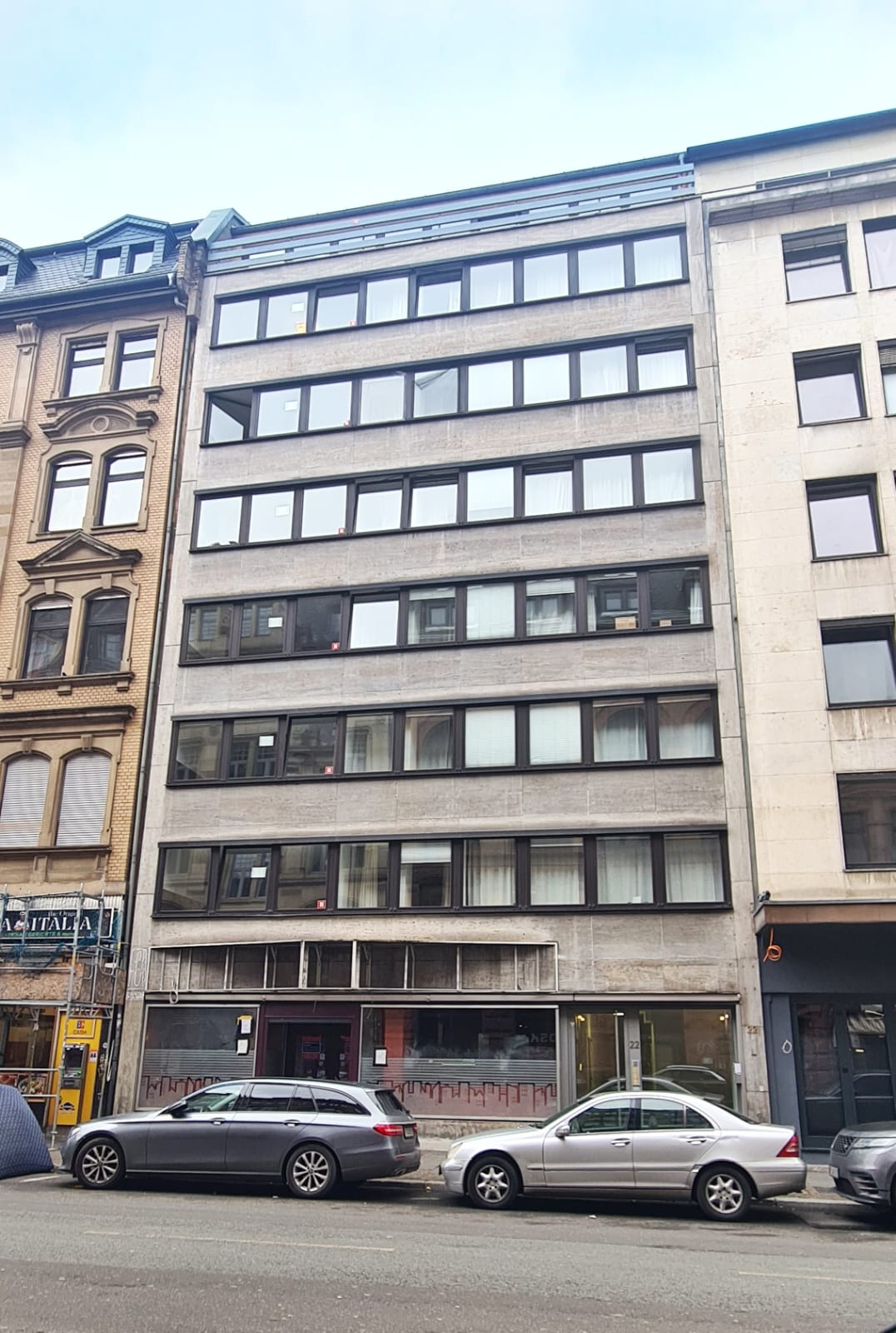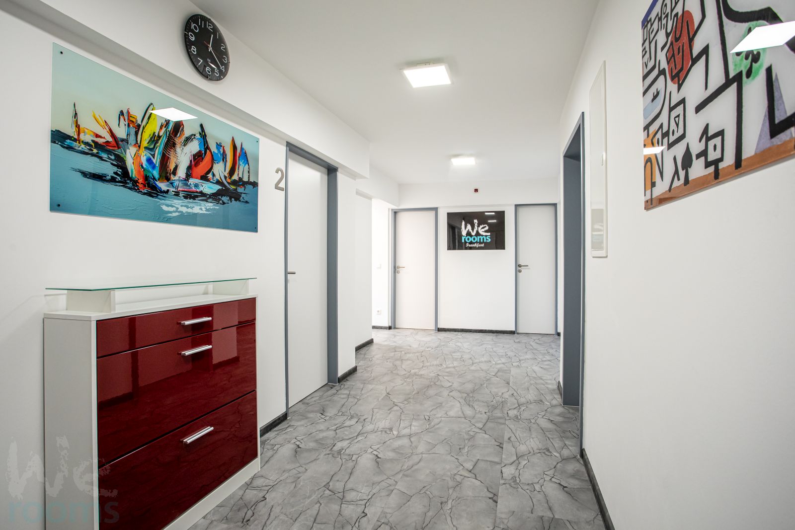 The entire floor is professionally cleaned twice a week in the communal areas. The location is very central, 300m away from the main station, directly in the Frankfurt railway station area, all banks are directly in front of the front door or in direct proximity.
