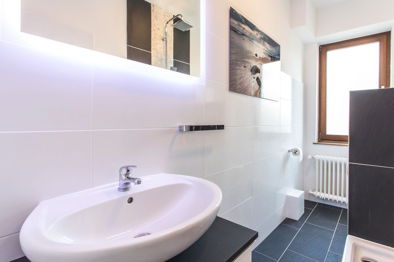Everything is modernly furnished, each room of course individually lockable and comfortably furnished with curtains, pictures, box spring bed incl. bedding and bed linen, bedside table, closet, desk, chair and TV, the common rooms: kitchen incl. washing machine, dryer, ceramic hob with oven, fridge-freezer, dishwasher and a basic set of cutlery and crockery, iron and ironing board are also available.