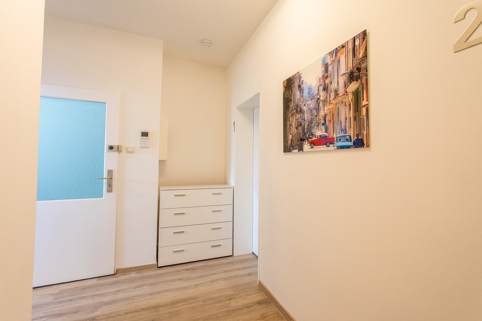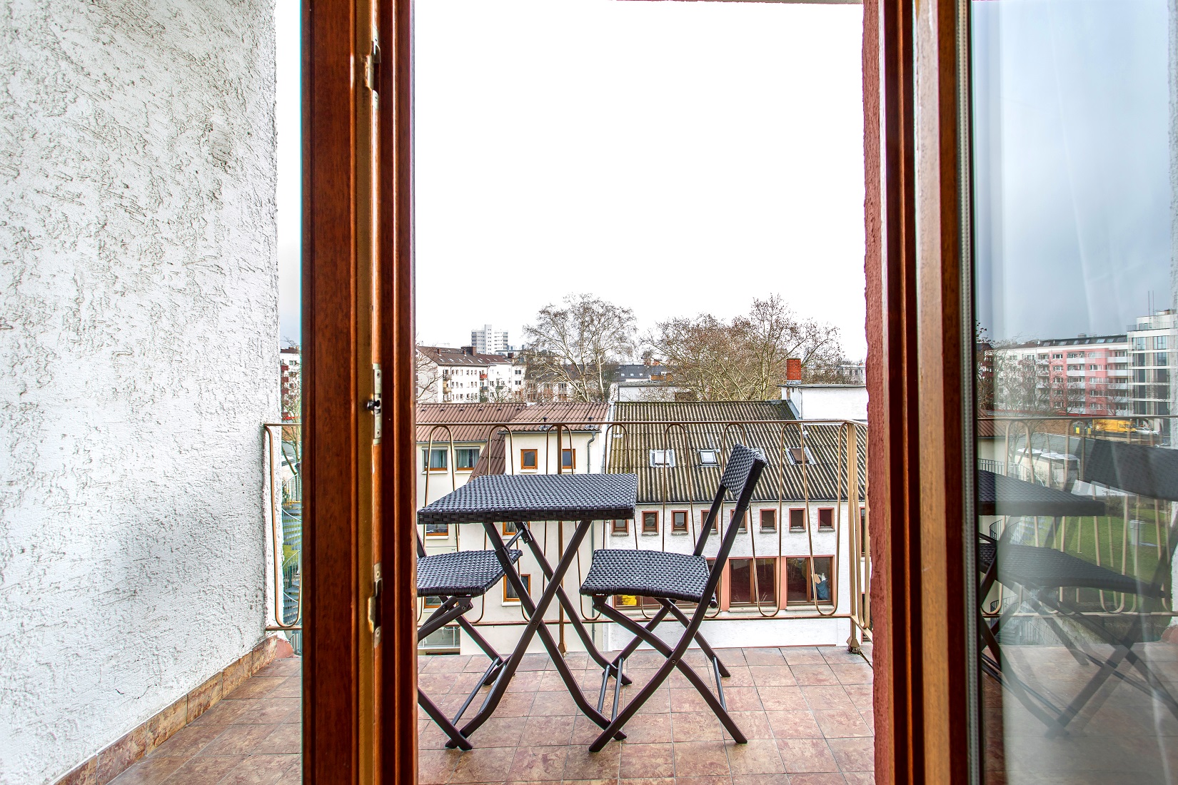 The Uhlandstr. in Frankfurt’s Ostend is a small side street, almost like an avenue due to the many trees. The S-Bahn station “Ostendstraße” with its own exit “Uhlandstr.” is less than a 5-minute walk away and thus a quick connection to the airport, for example.