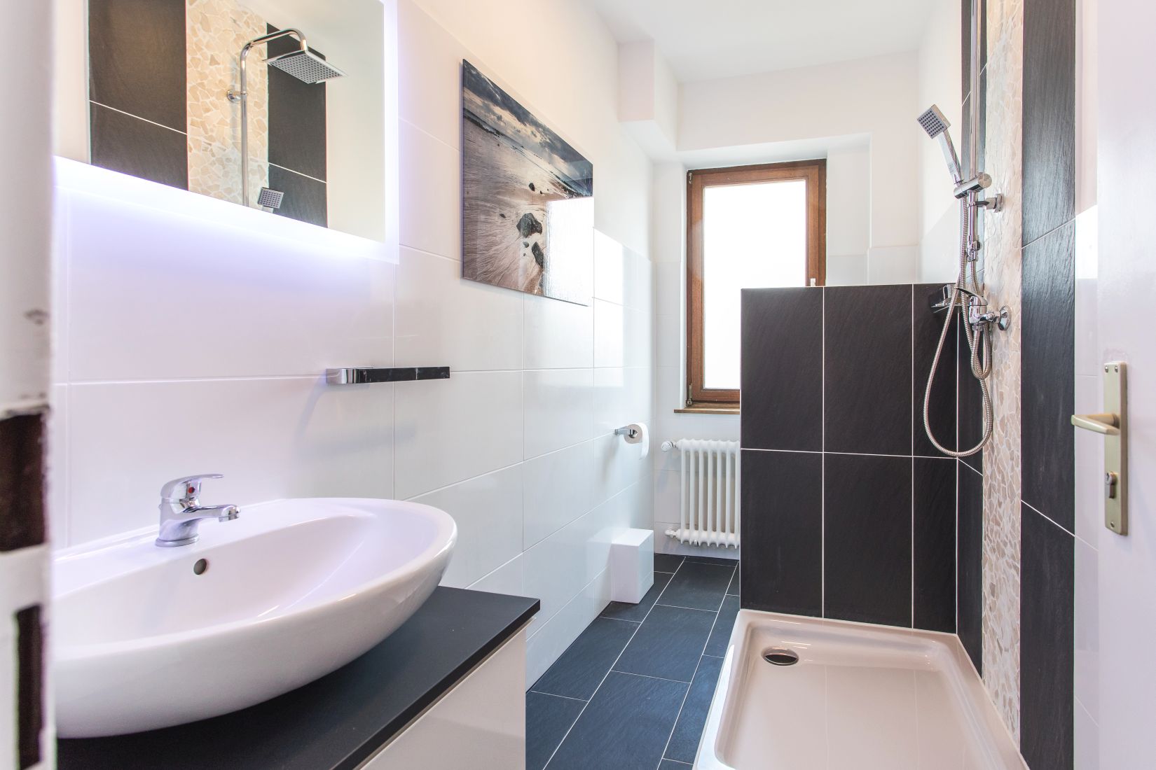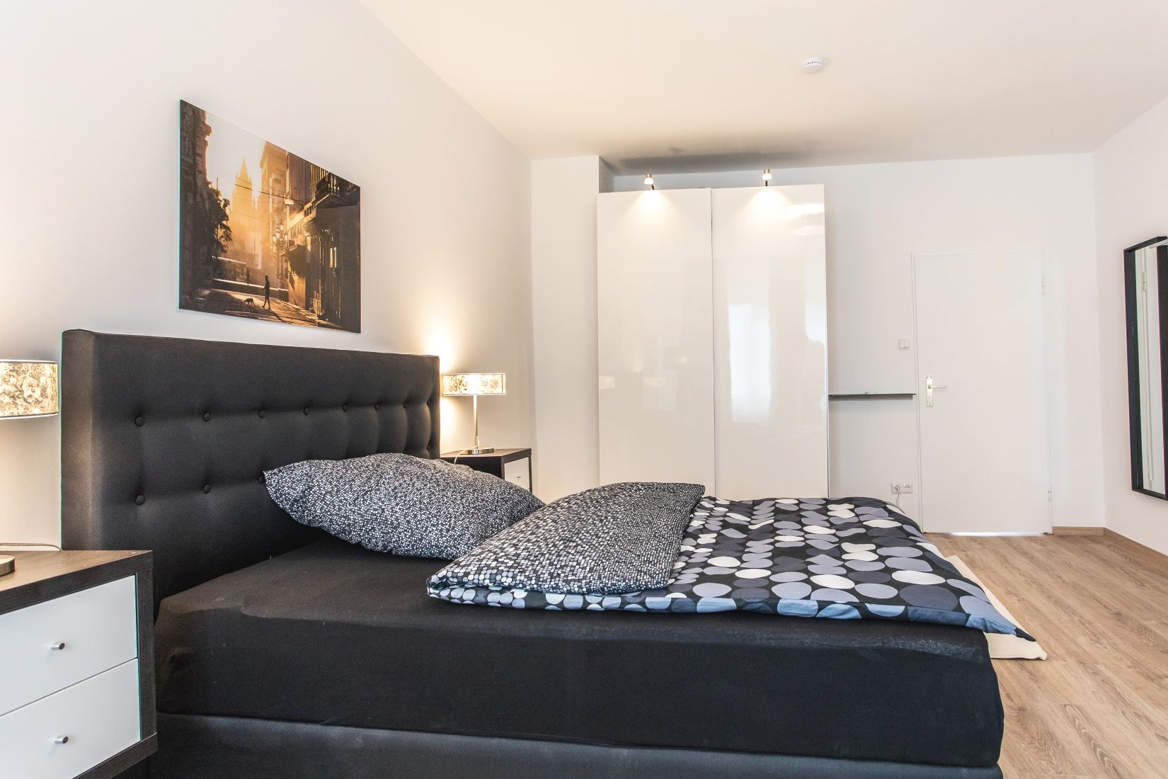 Everything is modernly furnished, each room of course individually lockable and comfortably furnished with curtains, pictures, box spring bed incl. bedding and bed linen, bedside table, closet, desk, chair and TV, the common rooms: kitchen incl. washing machine, dryer, ceramic hob with oven, fridge-freezer, dishwasher and a basic set of cutlery and crockery, iron and ironing board are also available.