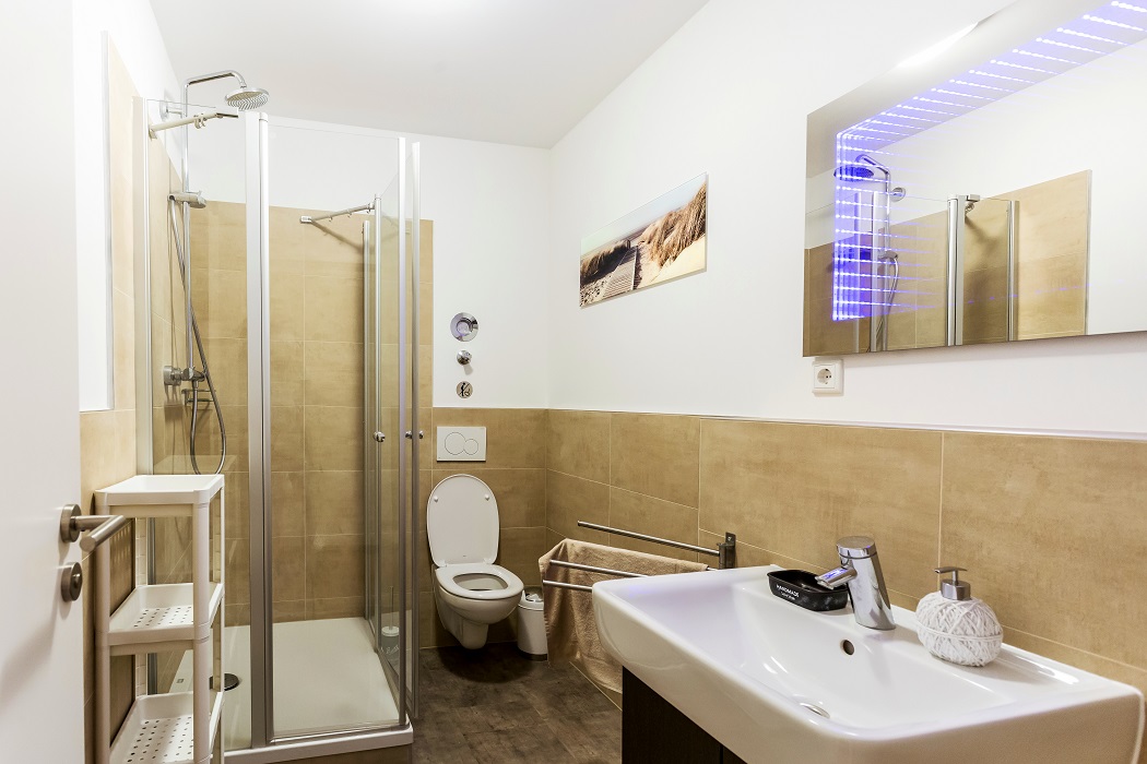 In addition, there are 2 bathrooms with shower and toilet for the common use of all flat residents. Coin-operated washing machine and dryer are also provided.