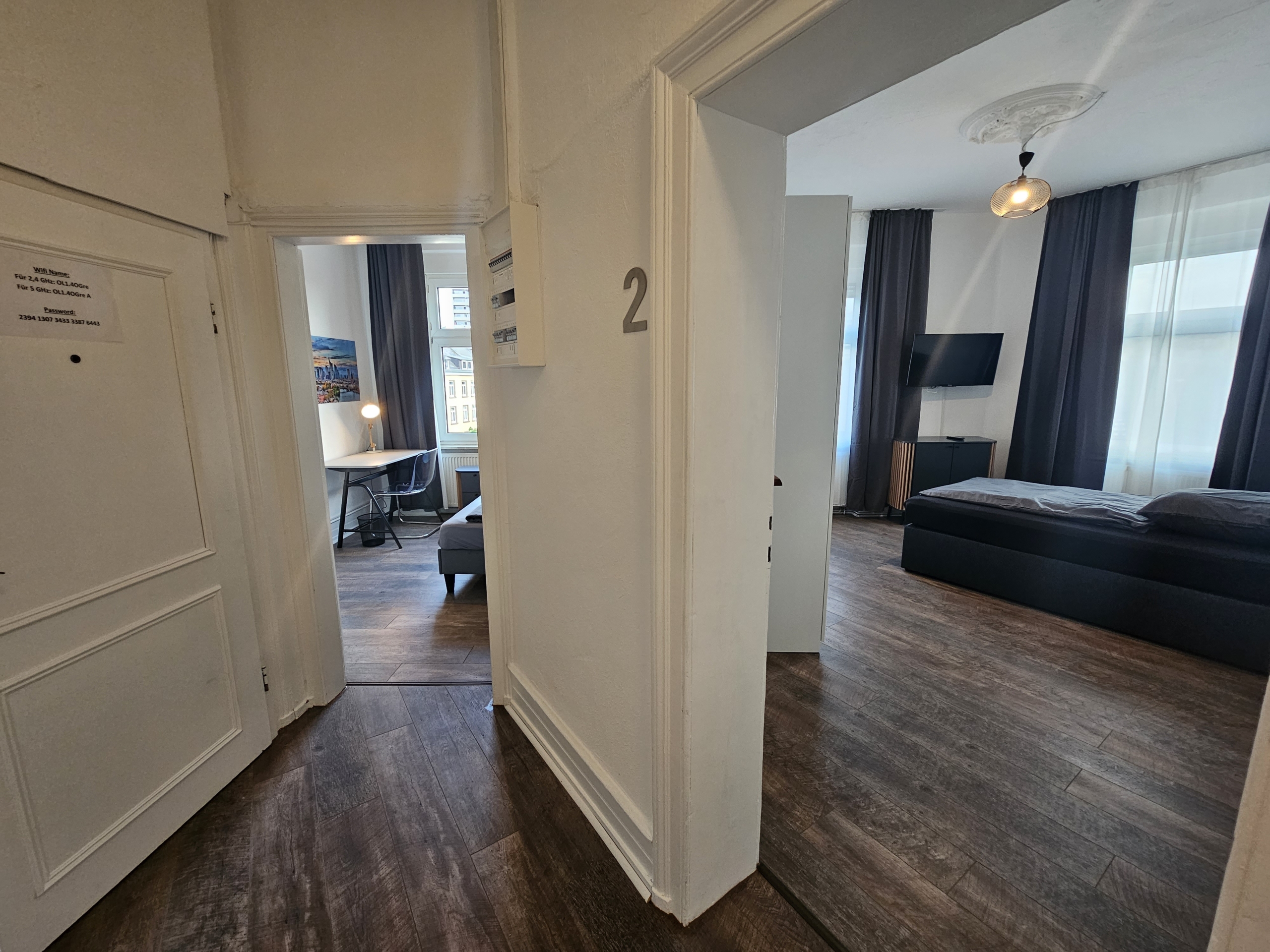 In addition, the shared flat has a central free WiFi access (up to 50,000 kBit/s) for all shared flat residents.